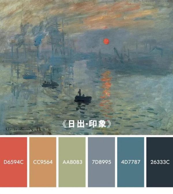 太阳落得那么快,我追不上它。莫奈《日出·印象》中灰绿、烟紫、蓝灰和橙红色的色彩组合,给人一种朦胧且梦幻的美感,应用于家居之中,褪去了热烈与明艳,平静不张扬,沉稳中又透露着生机,似微醺氛围中透露着纯情与唯美。