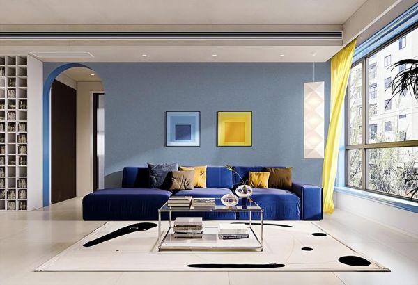 每个人心中都有一团火,路过的人只看到烟。梵高的蓝是孤独的深邃,是极致的典雅,与天洋墙布彼此交融,在理性和感性中找到最佳的平衡。星星点点的黄色点缀其中,跃动的因子冲破原有的孤独,让空间趋于安静柔和,演绎浪漫氛围。