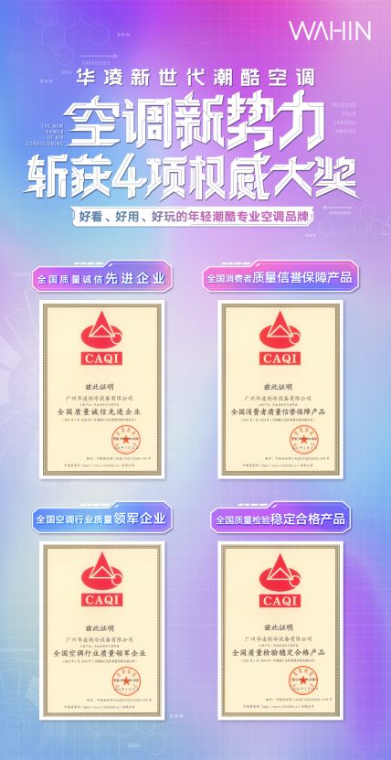 不仅如此,就在不久前,华凌空调还斩获了由中国质量检验协会颁布的“全国质量诚信先进企业”“全国消费者质量信誉保障产品”“全国空调行业质量领军企业”以及“全国质量检验稳定合格产品”四项权威大奖,由此可见华凌空调的市场评价。