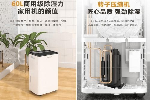 多乐信家用机ER-60在京东除湿机热销榜中名列前茅,除了出色的性能、高效的除湿效果以外,60升的大除湿量做到商住两用,适合180平以内的空间使用,无论是别墅、自建房,还是健身房、图书馆等商业场所,这台机器都能很好地解决大空间潮湿问题。除了选用优质的压缩机以外,还有辅助干衣功能、负离子净化功能以及WIFI远程控制,功能十分齐全,是很多消费者的不二之选。