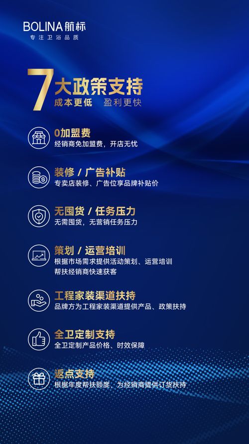 上海展期间,航标卫浴还将发布最新的招商计划及7大加盟政策扶持,为航标卫浴的经销商们带来实际的加盟优惠及开店扶持,从开店到盈利,与经销商一起共赢。