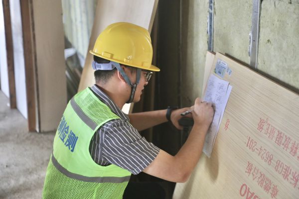那么,究竟什么样的难燃板才是符合标准的产品呢?还是得靠科学和数据说话。现场,兔宝宝2024公开检测活动同日启动。本次公检活动将对湖南建投发展大厦项目的难燃板产品进行检测,来自CTI华测检测的杨昇对施工现场的难燃板进行了抽样封样工作。