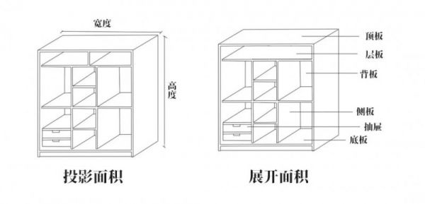 1.投影面积顾名思义就是将柜子投影在墙上的面积,即投影面积=柜体宽度x柜体高度。板材单价较高,但在标准配置内,不论柜内格局如何分区变动,总价基本无太大浮动。