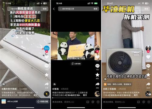 而在#抖in心动家 和#夏日酷爽趋势发布 话题下,美的内容矩阵和达人KOL也呈现了丰富的内容——前者侧重介绍美的产品的价格优势(如“酷省电价格打下来了”)和贴心服务(如“空调安装旺季,美的师傅全程为您服务”),同时为直播间引流;后者则侧重趣味性(如美的认养大熊猫的故事)和实测分享,贴合达人KOL的影响力和粉丝信任感。