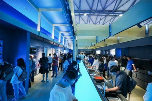 执精造景,巧绎新姿。近500㎡的悍高原创五金能量馆(N3CO3)以前卫之势傲然屹立,延续品牌一贯的艺术基调,交织精奢美学,循入家居新境。延伸性的渐进阶梯墙面贯彻整个展馆外立面,底部靛蓝律动光影交织涌动,如一艘出水巨舰,寻光而往,向隐而奢,尽显硬朗与力量的美感。航行二十载,悍高在家居五金行业的一方汪洋中,以中流击水的劲头,激荡起狂涛巨浪,持续向行业之巅提速迈进。