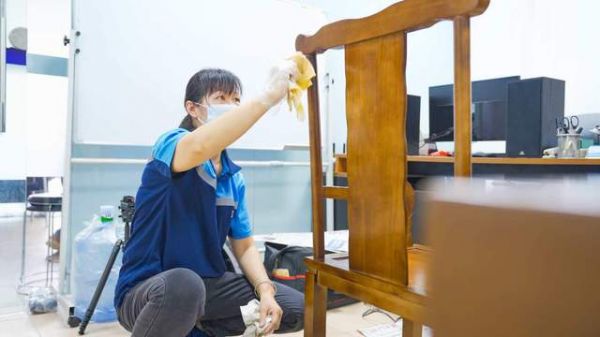 李世梅师傅这次的工作内容就是为家具除霉。清洁、除霉、调色、固色等一系列工作做完之后,家具焕然一新。按理说,服务效果达到客户预期,已经可以看做一次优秀的服务。