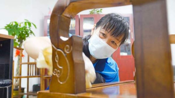 可李世梅却不仅局限于此。每当她完成本职修复工作之后,都会根据家具成色判断使用情况,再结合自己的经验给客户提出保养建议,如客户有额外需求,李世梅将对家具作保养处理,比如木蜡油封层防潮等,以延长家具寿命。