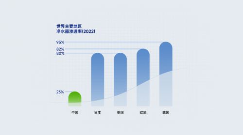 但是,净水器这项丝滑的发明在中国的普及率却只有23%,而在日本、韩国及欧美发达国家的净水器普及率都超过了80%,欧美的普及率高达90%,隔壁韩国甚至达到了95%。