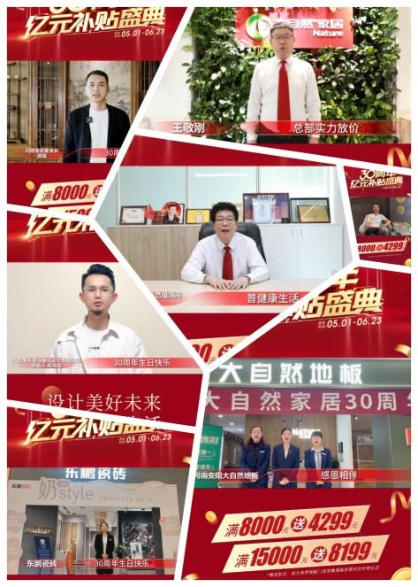 在品牌宣发方面,大自然家居联动了集团高层领导、全国近5000家门店、区域异业联盟、跨界品牌、设计师、老客户一同为大自然家居30周年亿元补贴盛典接力打call,集结多方传播力量发起“猛攻”,放大品牌声量。