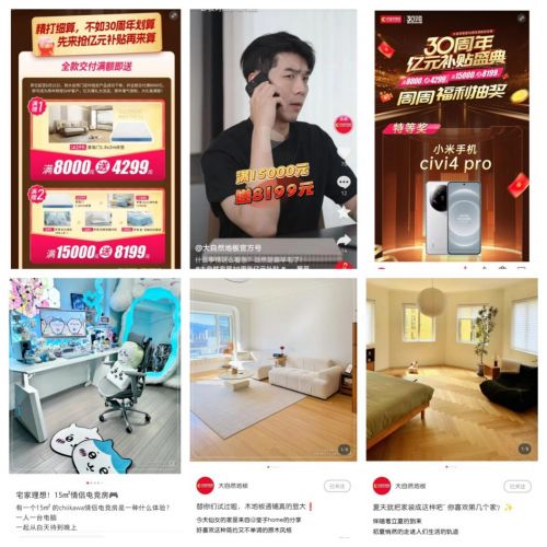 在自媒体平台,小红书和视频号围绕A2至A4消费人群的基本特征,推出焕新旧改、装修风格、空间场景、营销利益点多话题多维度输出内容并广泛种草,为线下门店强势引流。抖音在常态化直播基础上加码,推出周周直播宠粉抽奖,反哺线下门店,刺激高意向消费者群体下单转化,打通全链路闭环。