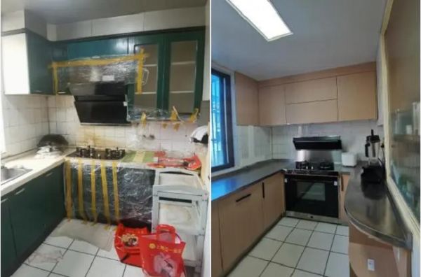 与此同时,冯女士还抓住了这个契机,对原本的 L 型厨房进行了巧妙改造,打造成了更具实用性的 U 型厨房,使烹饪动线更加流畅合理。不仅如此,这次的改造还在吊柜空间上做了进一步的优化,新增了一组吊柜,并特别设计了抽屉和转角柜的组合,大大提高了空间的利用率。搭配上火星人集成灶,其高效的吸油烟功能,让厨房油烟无处遁形,为家人创造了一个更加健康、舒适的烹饪环境。