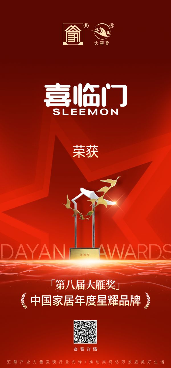 作为「第八届大雁奖——中国家居年度星耀品牌」的获奖者,喜临门家具将持续以设计驱动、潮流引领、创新作为企业品牌发展的战略方向,继续坚定的朝着“全球床垫行业引领者”的愿景迈进,成就民族品牌,让中国家具,中国美走向世界。