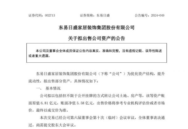 此外,为优化资产结构,提升流动性,公司拟以包括但不限于公开挂牌的方式转让公司土地、房产等,该等资产账面原值 6.81 亿元,账面净值 5.58 亿元,出售价格将参考专业机构评估价或者市场价,最终以成交价为准。