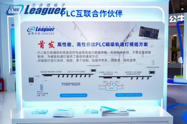 力合微秉持着持续不断的推出集成度更高、性能更卓越的PLC芯片以满足客户在市场竞争发展的需求,本次展会首发高性能、高性价比、小体积PLC磁吸轨道灯模组方案,利用直流供电金属条进行数据传输与控制,无需布信号线,不受屏蔽影响,是磁吸轨道灯最佳的通信方式,同时还可对磁吸灯进行全控、组控、单控其开/关,调节亮度和温度等功能,适用于商业照明、全屋智能磁吸灯应用方案。