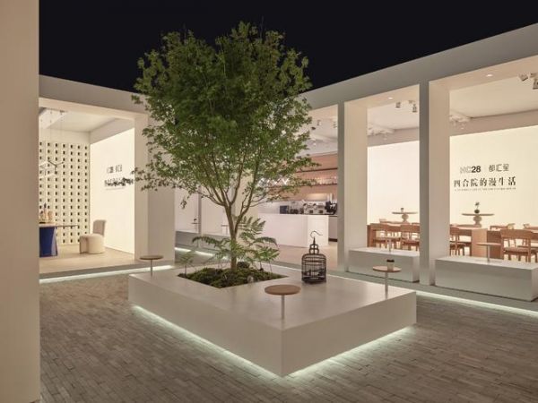 HC28|都汇里带来的现代四合院,立面通体米白色,精致典雅,辅以简单通透的空心砖墙,营造出松弛的呼吸感。四合院内部保留了“以屋围院”的建筑布局,围合庭院的四个空间,由不同风格与功能的生活场景组成。其中三个完整的起居空间,以HC28|都汇里经典产品打造,呈现出三种截然不同的格调与性格,有的独立前卫、有的活力张扬、也有的内敛沉稳。另外一个空间是特别打造的HC28 café,在这个咖啡馆里,有围合而坐的长桌,也有彼此对视的吧桌,它既是公共的,又很私人;既充满仪式感,又轻松惬意;它让人们享受独处,又令人们互诉衷肠,这些都是漫步在庭院中所能体验到的。