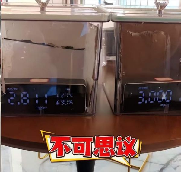 他们这个实验有点说服力,但是这还远远不够,毕竟是他们自己拍的视频,会不会是特制的PVC板有问题呢?会不会是箱子或仪器有问题呢?我们一定要自己来验证,我们随机着了一家装饰公司拿到了美阁乐的这套实验设备,经过检验,箱子和仪器都没问题,我们随便找了个纸皮在上面涂上美阁乐除醛漆,用吹风机吹干,开始了同样的除醛检测试验,也是10分钟左右,开始发挥除醛效果,这次我真的信了.....