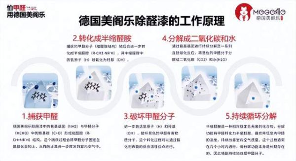 通过进一步了解,德国美阁乐除醛漆采用的是一种FTH醛化水技术。能够吸附装修中所有材料持续释放到空气当中的甲醛, 能够将吸附在其表面的有害物质(如甲醛)氧化分解为无害的水和二氧化碳。