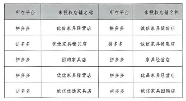 林氏家居现公布拼多多、淘宝等平台上未经授权的店铺清单: