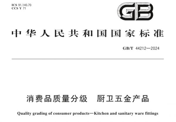 据国家市场监督管理总局、国家标准化管理委员会2024年第14号公告,GB/T 44212-2024《消费品质量分级 厨卫五金产品》定于2025年1月1日起实施。