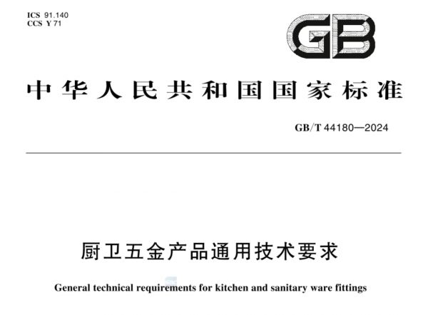 GB/T 44180-2024《厨卫五金产品通用技术要求》