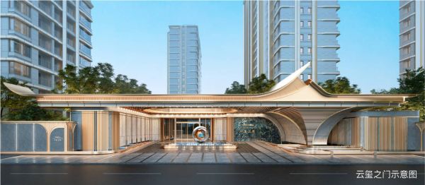 约45米宽的酒店式门庭+云玺之门,以云为媒、帆为梦,飞檐翘角间尽显尊贵与梦想的光芒,每一次归家都是一次心灵的升华之旅。