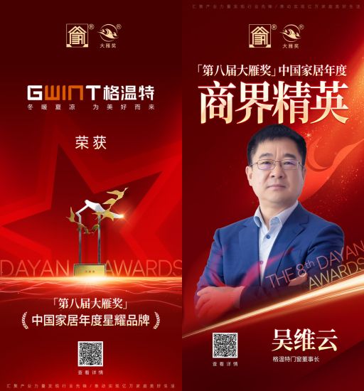 两项荣誉的加冕意味着格温特的产品实力、品牌影响力以及吴维云的领导力都受到了家居行业以及国际市场的认可和肯定,这不仅能为格温特未来的发展奠定坚实的国际基础,也进一步激发了其持续创新、深化国际合作的动力。吴维云董事长也将继续带领团队深化行业交流与合作,探索更多全球化战略路径,致力于将格温特打造成为具有国际竞争力的家居品牌典范,为全球消费者提供更加优质、环保、智能的家居生活体验。