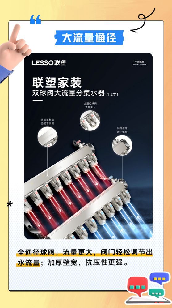 联塑推出的双球阀分集水器,以其卓越的品质和设计,成为众多家庭的首选。