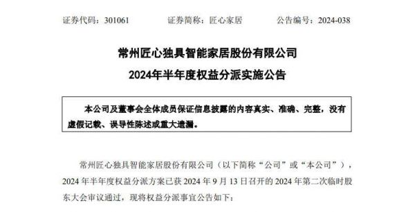 近日,上市家居企业陆续发布2024年半年度权益分配实施公告。