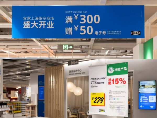 为庆祝9月26日盛大开业,宜家临空商场推出了一系列特别活动。9月24日至10月7日,顾客在临空商场每购物实付满300元即可获得50元优惠券,还可享受400余款国庆限时特惠;同时宜家上海响应《上海市关于进一步加大力度推进消费品以旧换新工作实施方案》,个人消费者在宜家上海四家商场购买符合要求的沙发、床垫、橱柜等1600余款家装、家居和适老化产品(*9月26日后将增加至2400余款),可按照销售价格的15%享受补贴。除此以外,适用于全屋设计的整体厨房及帕克思衣柜系列也有大额满赠福利,和广大消费者“宜”起狂欢。宜家上海四家门店的瑞典风味餐厅还将推出国庆特别活动,顾客在餐厅消费满100元以上,即可获得等值100元的电子消费券。