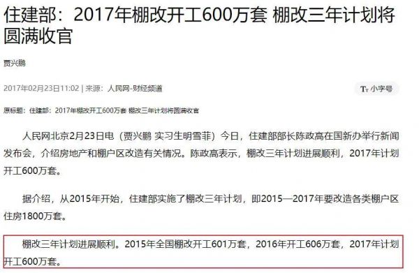 首先,这次的规模很小,只有100万,而上一轮棚改每年执行套数就超过600万套,堪称天量。