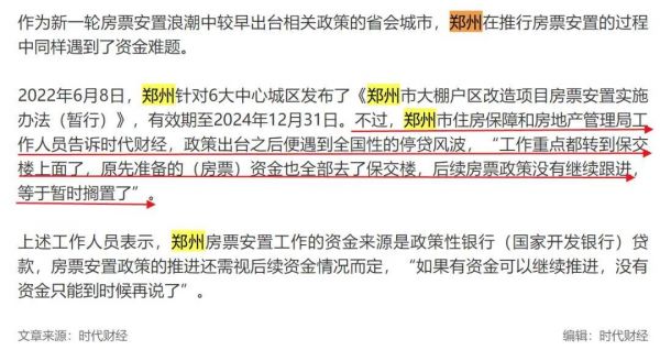 时代财经去年就发布过一篇文章披露,郑州原本打算投放到房票棚改的资金,在楼市风波当中改成了保交楼资金,房票棚改也就此搁浅。