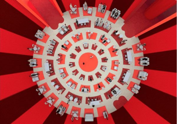 本次活动别具一格,高瞻远瞩,选择在充满未来主义色彩的西岸漩心(ORBIT)举行。该建筑由建筑师Thomas Heatherwick设计,属于西岸中環综合体,将设计、艺术与文化融汇于一段情景和情绪效果拉满的沉浸式体验之中。在展览空间之内将展出作品《The Orbit’s Orbit:艺术家Matilde Cassani致敬意大利设计的表演性装置》 ,充分发挥她在建筑、艺术和设计方面融会贯通的才华,在不断重复的表演中迸发生命力,邀请参观者参与其中,体验装置并详细阐述自己获得的启发。这件作品的特点在于以代表意大利设计精华的标志性产品构成同心螺旋,创造出一个不断演化的有机结构。展览区域如同一座放射状的城市,正在举行一场都市庆典,涌动其中的不仅有市民和观众的人潮,还有思想与文化的交流碰撞。表演者向同一方向行走,占据着充满设计作品的空间,使之转化为一个生机勃勃的室内空间。正是这个地点,西岸漩心展厅,凭借其形式、语义共鸣和表达能力,启发了Cassani的创作灵感。空间成为了意义的载体,如一段虚拟的乐谱,通过30多个参展品牌的大型家具布置、舞者和经过巧妙引导的观众奏响华章。