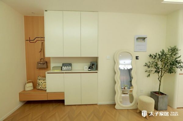 太子家居环保全屋定制,涵盖门墙柜一体化、成品家具一体化、软装配饰一体化等多个方面,为消费者提供多方位、个性化的家居解决方案。设计师们依据不同的空间尺度、风格需求以及个人喜好,提供从颜色、材质到纹理的一体化设计,确保家居风格的高度统一与协调。同时,太子家居注重产品的功能性与实用性,通过科学的空间规划和收纳设计,合理利用每一寸空间,让家居生活更加便捷、舒适。