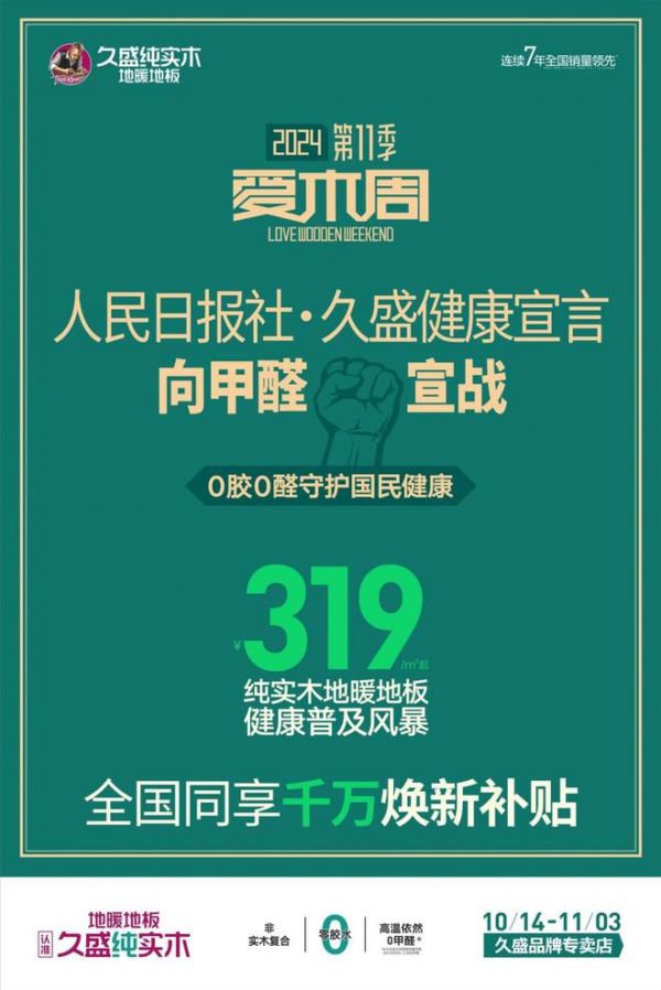 以木为媒,让爱木之心化作守护家的力量,加入久盛爱木周,向甲醛宣战,共同守护这份来自自然的温暖与力量!