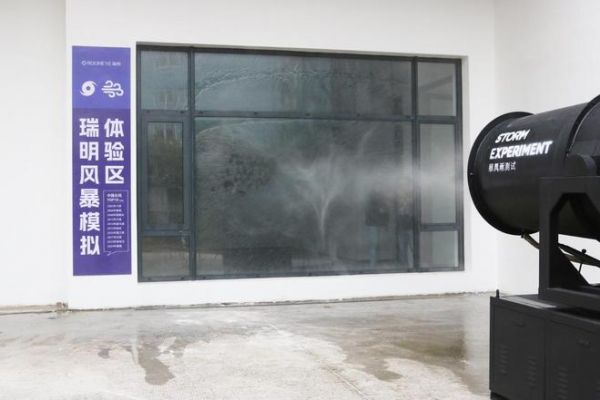 鉴于今年上海台风事件的强烈冲击,赖老师对门窗的抗风压性能给予了高度关注。抵达瑞明总部后,他当即要求现场进行一场 “风暴测试”。利用大型雾炮(风暴机)逼真模拟12级大型台风,对门窗的各个部位进行了长达30分钟的强力冲击。