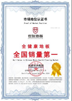 2024年11月,尚普咨询集团向浙江世友木业有限公司 (以下简称“世友木业”),旗下的全健康地板产品颁发市场地位认证书。此次世友地板荣获尚普咨询【世友地板,全健康地板全国销量第一】认证,表明世友地板凭借其卓越的品质保证,赢得了市场的广泛认可。