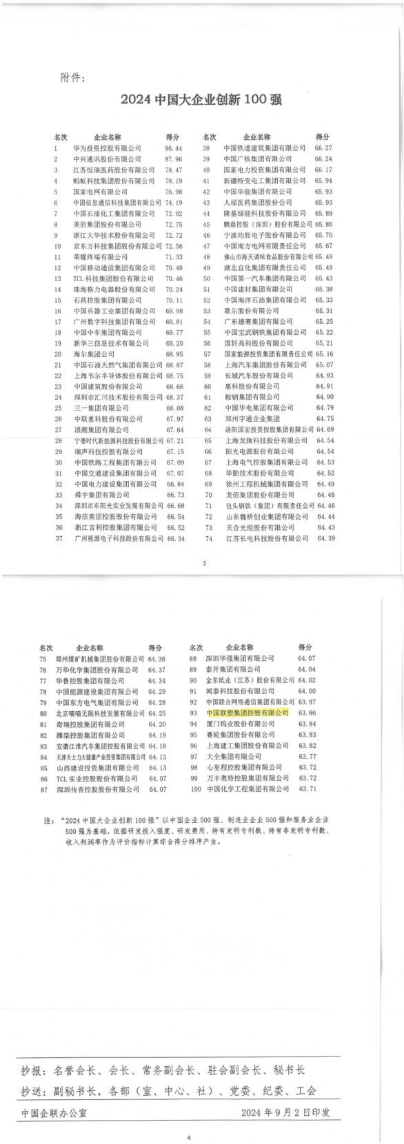 近日,由中国企业联合会与中国企业家协会共同发布的“2024中国大企业创新100强”榜单揭晓,中国联塑集团控股有限公司(以下简称“中国联塑”)凭借其在科技创新领域的突出成就,荣登榜单。此次评选旨在表彰那些在技术创新、研发投入以及专利持有量等方面做出卓越贡献的企业,中国联塑的成功入选,不仅彰显了其强大的创新能力,也为行业发展树立了新的标杆。