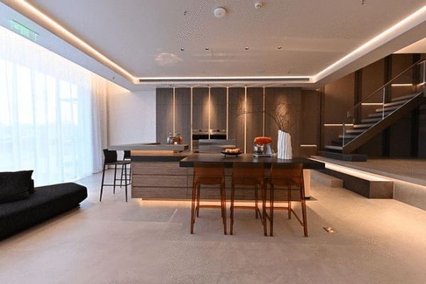 会客厅的二层,更是区别于传统的家居专卖店,拥有茶室、电竞房、儿童活动区、中西餐厨等生活、娱乐场景。电竞房区域融入了智能家居技术,如摩根智能操控屏,让灯光随心调控;中西餐厨区域则巧妙结合了中式厨房与西式厨房,并配备可容纳20余人的餐厅,既增添了生活的烟火气,又赋予了社交厨房的属性;茶室则是日式塌塌米设计,人们在这里尽可以轻松而悠闲地静坐、闲聊、发呆。一个小小的细节是:所有这些产品,全部来自KD定制。