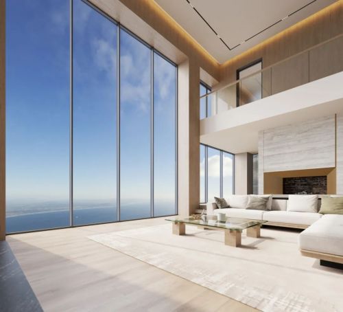 如今越来越多的高端住宅注重建筑与自然的融合,通过运用大宽幅的采光窗,在外立面的设计上“做减法”。其核心逻辑是「减少门窗型材可视面面积」,增加「玻璃的面积」及玻璃「透明度」,除了能削弱建筑体量感,消弭建筑边际外,还能引入更多的自然采光和风景,在简约、纯粹的建筑形式下,表达出自然、高级的审美与智慧。新标天铂系列全景幕墙窗,攻破行业上大玻璃门窗的技术难关,专为高端住宅景观幕墙而生。层高6M的跃式奢宅设计,筑就出幕墙式的「高」视界观,立柱可视面50MM的极致跃级,尽显窄中见广之设计精髓,整面纯粹窗墙,通透明朗,以光造景,犹如空中观景台,为居宅增添了恢弘之感,尽享奢隐生活的视觉盛宴。