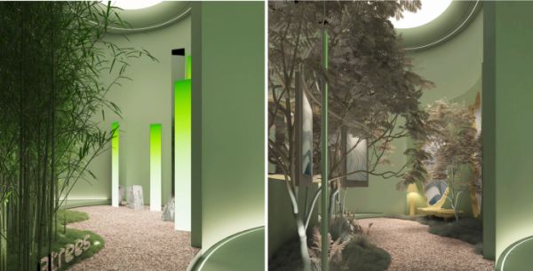 特别值得一提的是,三棵树展馆融合了四季变换与森林场景,为观众带来科技与自然的奇妙交融。展馆使用了年度色彩趋势——“清欢·绿薄纱”作为主色调,营造出一种清新脱俗的美好意境,让人仿佛置身于诗意的栖居之中。