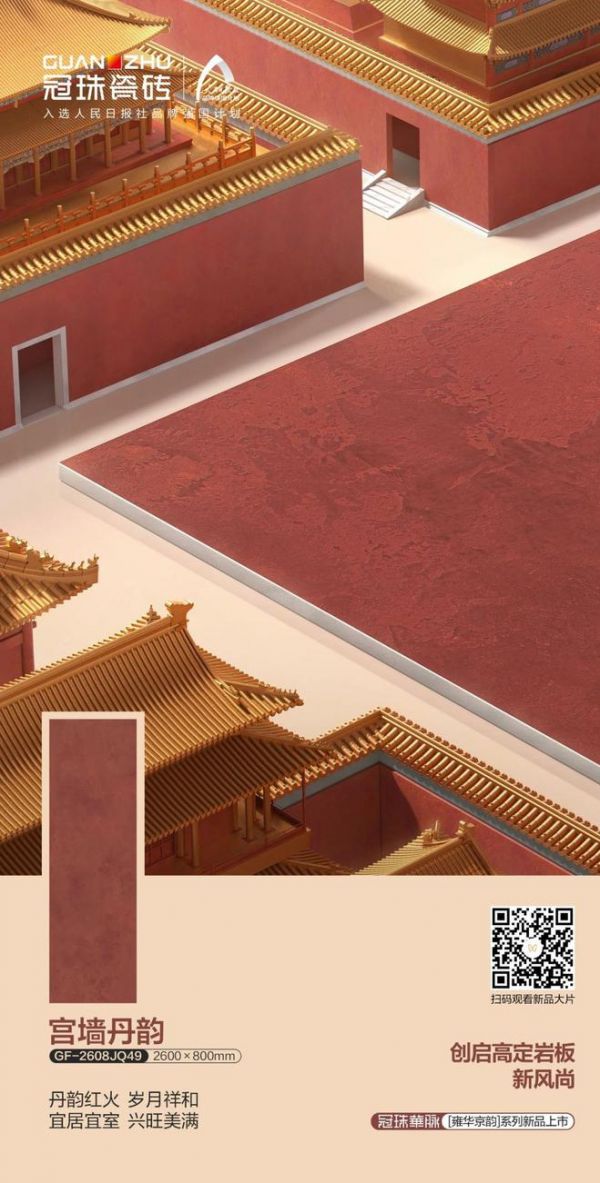 作为本次主题高定展的主角,冠珠华脉「雍华京韵」系列秉持着“让北京文化之美享誉世界”的理念,凝炼北京中轴线上的京城宫墙美学,与京作天工技艺的文化精粹,引领着高定岩板新风尚。致力在世界的舞台上诠释,国都风范、古都底蕴、国韵新潮。