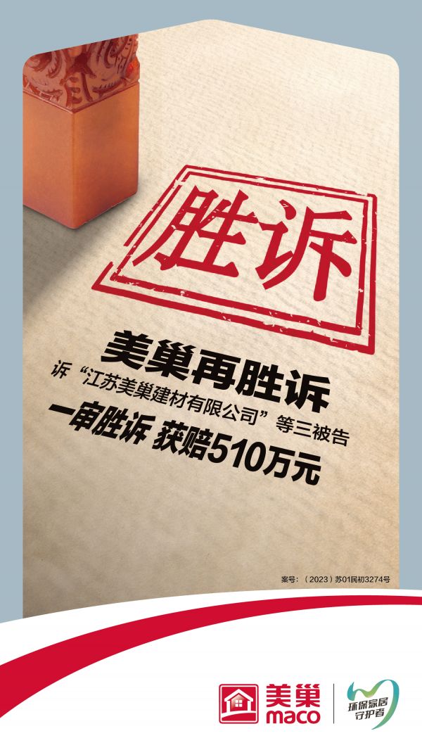 美巢集团诉“江苏美巢建材公司”等三被告 一审胜诉获赔510万元