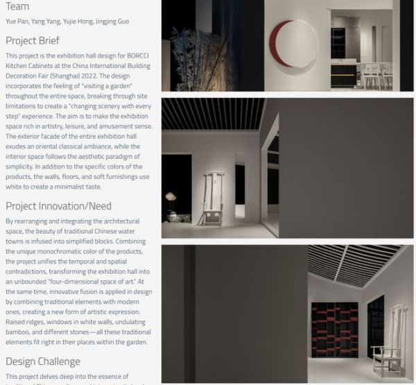 本项目是柏厨橱柜于2022中国建博会(上海)的展馆设计。设计以“游园”的巧思贯穿其间,打破场地的限制。营造出“移步换景”的体验,让产品展览空间兼具丰富的艺术性和趣味性。
