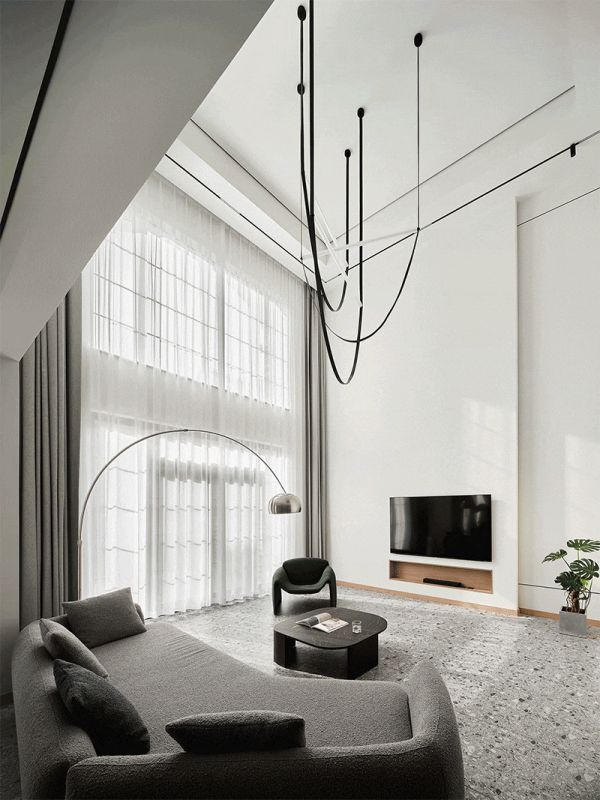 业主需求:这栋四层别墅的业主。喜欢黑白灰的极简风,但是又希望空间不要过于冷清,要有自然的暖意,以及艺术的美感。