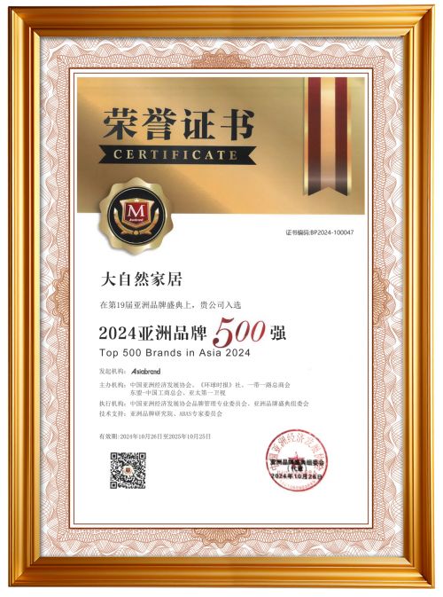 品牌,是企业的灵魂。大自然家居凭借 910.56 亿的超高品牌价值,连续 7 年荣登 “亚洲品牌 500 强”。这一傲人成绩的背后,是大自然多年来始终肩负着满足全球消费者理想居住环境的使命,以品牌为基石,不断在产品研发、设计、制造等各个环节深耕细作,持续创新。正是这种对品牌的执着与坚守,推动着民族家居产业迈向高质量发展的道路,也为大自然家居在地板品类销售中拔得头筹奠定了坚实基础。