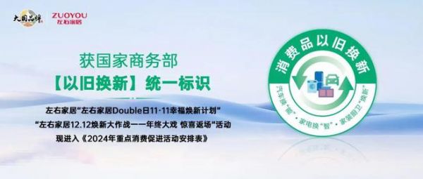 随着经济增速放缓、消费需求变化,家居行业正面临前所未有的挑战。为促进家居市场消费,2024年国家再度发力,汇聚建材企业、家居卖场等多方力量共同开展“以旧换新”行动,左右家居积极响应国家政策,以旧换新促消费活动进入《2024年重点消费促进活动安排表》,获准使用商务部「消费品以旧换新」标识,推动家装消费品换新。这不仅是商务部对左右家居以旧换新活动的肯定,也让广大消费者更加信任左右家居的以旧换新活动是真正惠民让利的活动。