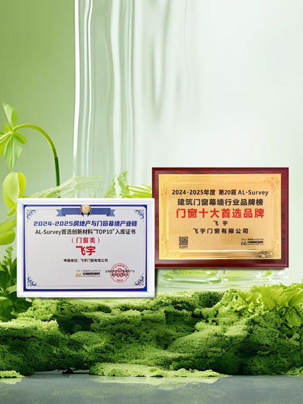飞宇门窗凭借卓越的“品质+服务”,再度蝉联"门窗十大首选品牌"榜,并成功入选“AL-Survey首选创新材料TOP10”。连续四年的蝉联不是简单的重复,而是持续突破的见证,再次印证了飞宇在高端定制铝合金门窗领域的标杆地位和优秀口碑。