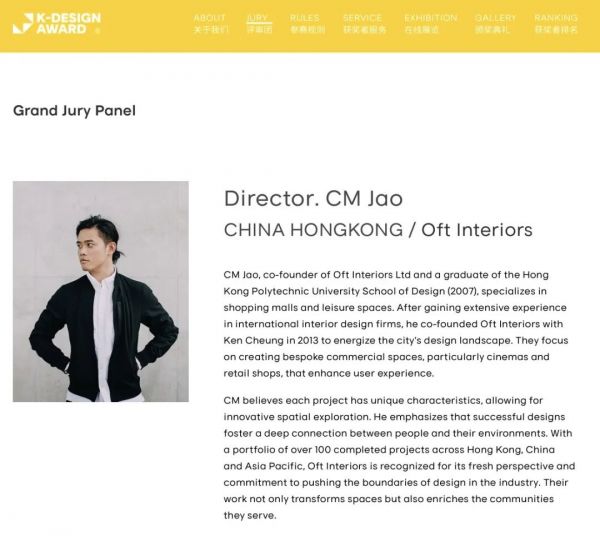 邹卓明深耕设计行业多年,以其独特的设计理念和对细节的极致追求,带领Oft Interiors团队打造了众多备受瞩目的商业地产项目。他的作品不仅屡获国际大奖,更成为行业标杆,深受客户与业界赞誉。此次担任K-DESIGN AWARD评委,邹卓明先生将与其他国际设计权威一同,评选出全球范围内最具创新性与前瞻性的设计作品,助力推动设计行业的未来发展。