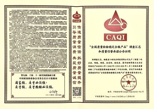 在2025.3.15国际消费者权益日,小牧卫浴凭借卓越品质荣获由中国质量检验协会颁发的“全国质量检验稳定合格产品”认证。这一荣誉不仅是对小牧卫浴产品质量的高度认可,更是对品牌多年来坚守质量底线、追求卓越品质的有力证明。