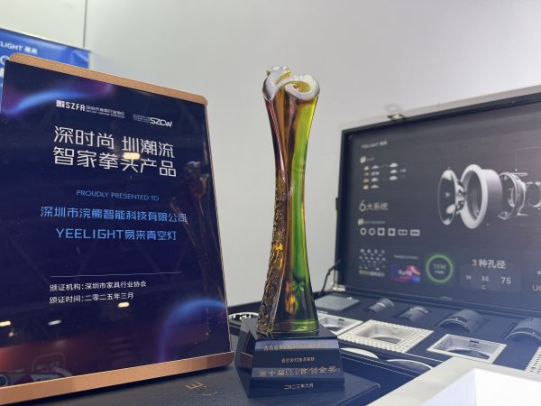 本次展示由易来深圳运营中心-深圳市浣熊智能科技有限公司承办,展会现场吸引众多用户关注。本次易来展区展示了青空®灯的独特i效果,青空®灯模拟自然光的瑞利散射效应,能在室内营造出宛如真实蓝天的视觉效果,特别适合采光不足的空间。此外,青空®灯可以能够接入米家实现智能控制与智能联动,为用户打造智能化的生活体验。值得一提的是,在此次展会上,易来青空®灯获得了 “深时尚 圳潮流 智家拳头产品” 和 “第十届 LED 首创金奖”。这两个奖项不仅是对易来青空®灯产品创新性和设计感的高度认可,也彰显了易来在智能照明行业的引领地位。